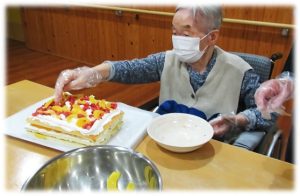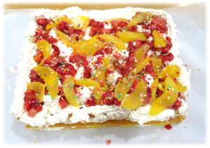 ↑ケーキ台にクリームを塗り、ホイップクリームでデコレーション✨