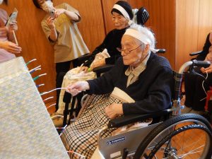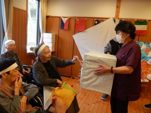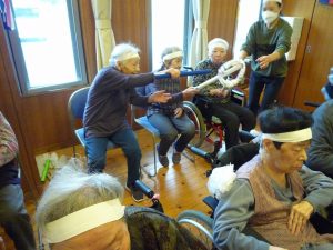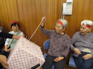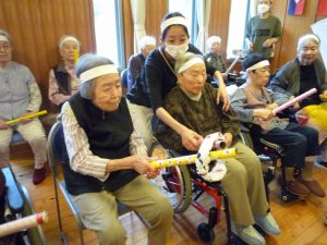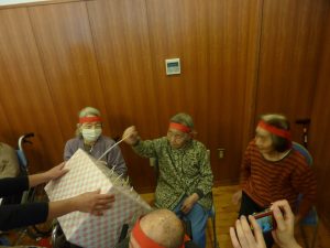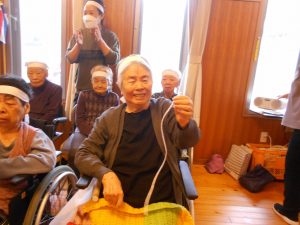 ご利用者の競技 まずは「ヒモ引きゲーム」