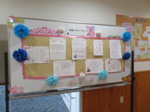 ↑お祝いのメッセージもたくさんいただきましたので、玄関にて掲示をしました✉