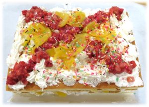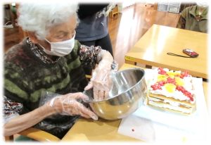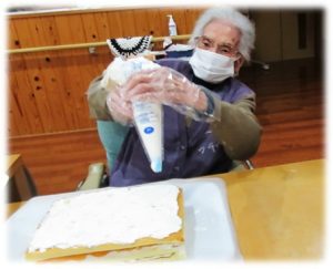 ↑ケーキ台にクリームを塗り、ホイップクリームでデコレーション✨