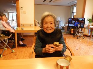 ご利用者にも準備をお手伝いいただき、美味しく出来上がることを祈って・・・